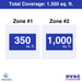 • Coverage Area: Total: 1,350 sq. ft.//Zone 1: 350 sq. ft.//Zone 2: 1,000 sq. ft.