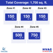 • Coverage Area: Total: 1,700 sq. ft.//Zone 1: 150 sq. ft.//Zone 2: 150 sq. ft.//Zone 3: 150 sq. ft//Zone 4: 500 sq. ft//Zone 5: 750 sq. ft