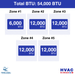 • 12k BTU = 351 to 500 Sq Ft.