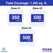 • Coverage Area: Total: 1,350 sq. ft.//Zone 1: 350 sq. ft.//Zone 2: 500 sq. ft.//Zone 3: 500 sq. ft.