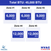 • Capacity: Total: 45,000 BTU//Zone 1: 6,000 BTU//Zone 2: 6,000 BTU//Zone 3: 9,000 BTU//Zone 4: 12,000 BTU//Zone 5: 12,000 BTUCapacity: Total: 45,000 BTU//Zone 1: 6,000 BTU//Zone 2: 6,000 BTU//Zone 3: 9,000 BTU//Zone 4: 12,000 BTU//Zone 5: 12,000 BTU