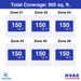 • Coverage Area: Total: 900 sq. ft.//Zone 1: 150 sq. ft.//Zone 2: 150 sq. ft.//Zone 3: 150 sq. ft//Zone 4: 150 sq. ft//Zone 5: 150 sq. ft//Zone 6: 150 sq. ft