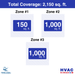 • Coverage Area: Total: 2,150 sq. ft.//Zone 1: 150 sq. ft.//Zone 2: 1,000 sq. ft.//Zone 3: 1,000 sq. ft