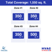 • Coverage Area: Total: 1,400 sq. ft.//Zone 1: 350 sq. ft.//Zone 2: 350 sq. ft.//Zone 3: 350 sq. ft//Zone 4: 500 sq. ft