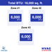 • Capacity: Total: 18,000 BTU//Zone 1: 6,000 BTU//Zone 2: 6,000 BTU//Zone 3: 6,000 BTU