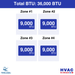 • Capacity: Total: 36,000 BTU//Zone 1: 9,000 BTU//Zone 2: 9,000 BTU//Zone 3: 9,000 BTU//Zone 4: 9,000 BTU