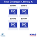 • Coverage Area: Total: 1,650 sq. ft.//Zone 1: 150 sq. ft.//Zone 2: 500 sq. ft.//Zone 3: 500 sq. ft.//Zone 4: 500 sq. ft.