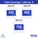 • Coverage Area: Total: 1,600 sq. ft.//Zone 1: 350 sq. ft.//Zone 2: 500 sq. ft.//Zone 3: 750 sq. ft.