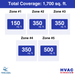 • Coverage Area: Total: 1,700 sq. ft.//Zone 1: 150 sq. ft.//Zone 2: 350 sq. ft.//Zone 3: 350 sq. ft.//Zone 4: 350 sq. ft.//Zone 5: 500 sq. ft.