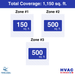 • Coverage Area: Total: 1,150 sq. ft.//Zone 1: 150 sq. ft.//Zone 2: 500 sq. ft.//Zone 3: 500 sq. ft