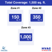 • Coverage Area: Total: 1,500 sq. ft.//Zone 1: 150 sq. ft.//Zone 2: 350 sq. ft.//Zone 3: 1,000 sq. ft