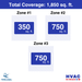 • Coverage Area: Total: 1,850 sq. ft.//Zone 1: 350 sq. ft.//Zone 2: 750 sq. ft.//Zone 3: 750 sq. ft