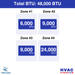 • Capacity: Total: 48,000 BTU//Zone 1: 6,000 BTU//Zone 2: 9,000 BTU//Zone 3: 9,000 BTU//Zone 4: 24,000 BTU