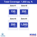 • Coverage Area: Total: 1,850 sq. ft.//Zone 1: 150 sq. ft.//Zone 2: 350 sq. ft.//Zone 3: 350 sq. ft//Zone 4: 1,000 sq. ft