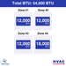 • Capacity: Total: 54,000 BTU//Zone 1: 12,000 BTU//Zone 2: 12,000 BTU//Zone 3: 12,000 BTU//Zone 4: 18,000 BTU