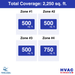 • Coverage Area: Total: 2,250 sq. ft.//Zone 1: 500 sq. ft.//Zone 2: 500 sq. ft.//Zone 3: 500 sq. ft//Zone 4: 750 sq. ft