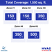 • Coverage Area: Total: 1,500 sq. ft.//Zone 1: 150 sq. ft.//Zone 2: 150 sq. ft.//Zone 3: 350 sq. ft.//Zone 4: 350 sq. ft.//Zone 5: 500 sq. ft.