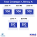 • Coverage Area: Total: 1,750 sq. ft.//Zone 1: 350 sq. ft.//Zone 2: 350 sq. ft.//Zone 3: 350 sq. ft.//Zone 4: 350 sq. ft.//Zone 5: 350 sq. ft.