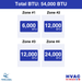 • Capacity: Total: 54,000 BTU//Zone 1: 6,000 BTU//Zone 2: 12,000 BTU//Zone 3: 12,000 BTU//Zone 4: 24,000 BTU