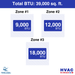• Capacity: Total: 39,000 BTU//Zone 1: 9,000 BTU//Zone 2: 12,000 BTU//Zone 3: 18,000 BTU