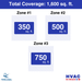 • Coverage Area: Total: 1,600 sq. ft.//Zone 1: 350 sq. ft.//Zone 2: 500 sq. ft.//Zone 3: 750 sq. ft