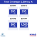 • Coverage Area: Total: 2,200 sq. ft.//Zone 1: 350 sq. ft.//Zone 2: 350 sq. ft.//Zone 3: 500 sq. ft//Zone 4: 1,000 sq. ft